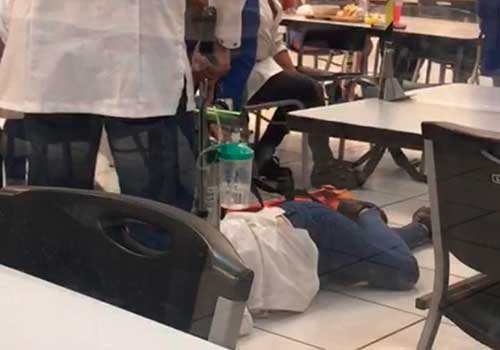 Ante la desesperación y la tardanza de la enfermera o doctor la trabajadora terminó perdiendo el conocimiento, hasta que finalmente llegó la ayuda y se le brindó la atención necesaria logrando finalmente liberar la obstrucción de la garganta y permitir que la persona pudiera respirar con normalidad.
