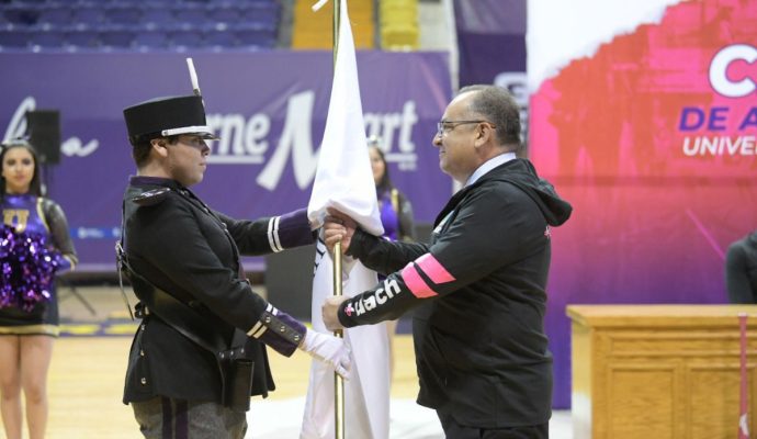 El Rector Rivera Campos se dirigió a las y los deportistas en el momento de la distinción y les comentó que hace la entrega del estandarte para que representen a la UACH con entereza, así como su uniforme, ya que en él llevan plasmado su esfuerzo, su ética y su integridad.