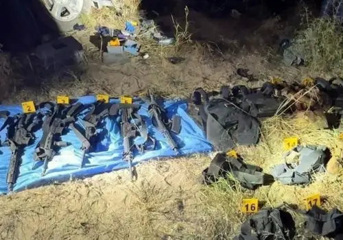 Reynosa, México.- Policías de la Guardia Estatal repelieron una agresión armada en la brecha TAM-Santo Domingo, en Reynosa, dejando cinco sicarios abatidos, entre ellos una mujer, y asegurando un arsenal, que incluye seis armas largas, equipo táctico y ponchallantas, y un vehículo con reporte de robo en el extranjero.