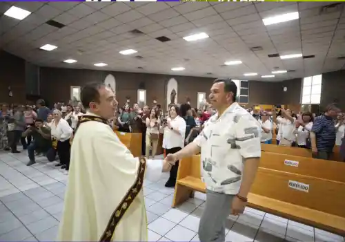 El Presidente Municipal, Cruz Pérez Cuéllar, también felicitó al Padre Chava por sus 25 años de servicio, subrayando que cada uno, desde su ámbito, debe trabajar por el bienestar de la comunidad, como lo ha hecho el padre Magallanes.