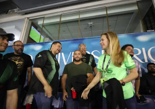 Antes del inicio del partido, Pérez Cuéllar dialogó con la presidenta de Bravos, Alejandra de la Vega y oros directivos del club.