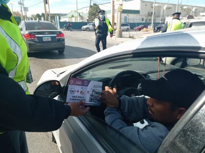Cd. Juárez.- Elementos de la Coordinación General de Seguridad Vial arrancaron este día una campaña de proximidad para acercar a la comunidad el mensaje de no conducir bajo los influjos del alcohol durante las festividades que se avecinan.