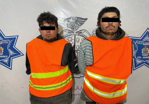 Motivo por el cual les marcaron el alto y al consultar la serie vehicular en el sistema de Plataforma Juárez, se tuvo conocimiento que contaba con reporte de robo, procediendo al arresto de quienes se identificaron como Miguel P. D. de 25 años y Carlos Enrique R. C. de 23 años.