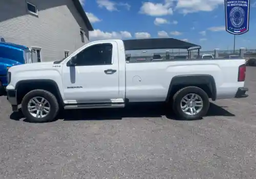 El reporte policial señala que al implementar acciones de revisión para detectar unidades con reporte de robo y/o alteraciones en sus números de serie o documentos, se procedió a la inspección de un vehículo GMC, línea Sierra, modelo 2016, color blanco.