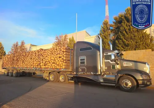 El aseguramiento se efectuó el pasado jueves, cuando los agentes que realizan recorridos de vigilancia por la Carretera Parral – Guadalupe y Calvo, a la altura de La Casita, realizaron una revisión a un camión, marca Kenworth, modelo 2014, color gris, el cual remolcaba una plataforma cargada con 498 piezas de madera en rollo.