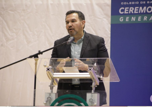 “Les agradezco a sus padres y maestros por su esfuerzo. Los animo a que mantengan el entusiasmo que los trajo hasta este momento. El camino no es fácil, pero deben esforzarse al máximo, ya que ustedes son el futuro de esta ciudad”, mencionó el alcalde frente a los 704 estudiantes graduados y sus familias en el evento efectuado en el Gimnasio del COBACH.