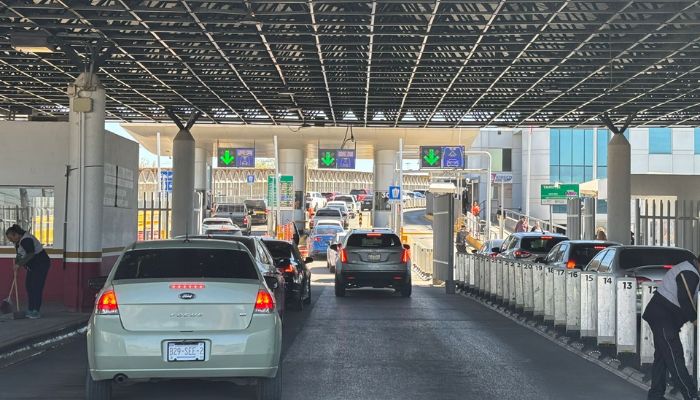 En el cruce Zaragoza-Ysleta, las filas se extienden más atrás de la plaza más cercana a la garita. Una vez dentro, la capacidad se encuentra completamente rebasada, generando un tiempo de espera cercano a los 45 minutos.