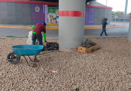 CD. Juárez.- Como parte del programa de mantenimiento de vialidades que lleva a cabo la Dirección de Limpia, su personal trabaja en la limpieza de la zona del puente Del Zorro, ubicado en el cruce del bulevar Francisco Villarreal Torres y Manuel Gómez Morín.