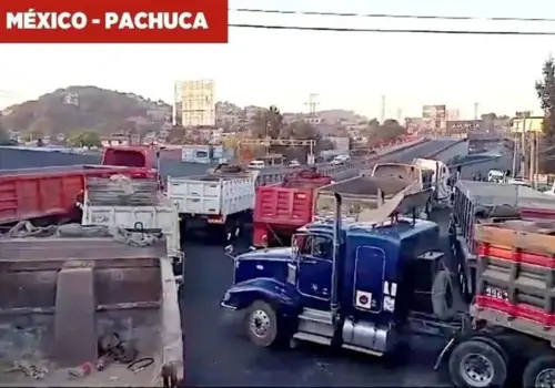 Ciudad de México.- Transportistas y contratistas de distintas empresas bloquearon durante varias horas las autopistas México-Pachuca y México-Querétaro, principales vías de acceso a la Ciudad de México, para exigir al Gobierno federal el pago de sus trabajos en el Tren Maya.