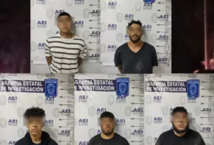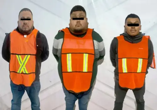 El vocero de la Secretaría de Seguridad Pública, Adrián Sánchez Contreras, informó que se detuvo a José Ventura G. T. de 42 años, Carlos Alfonso C. R. de 28 y José de Jesús V. O. de 33, en la avenida 16 de Septiembre y calle Lerdo, a bordo de un auto Nissan March blanco modelo 2018.