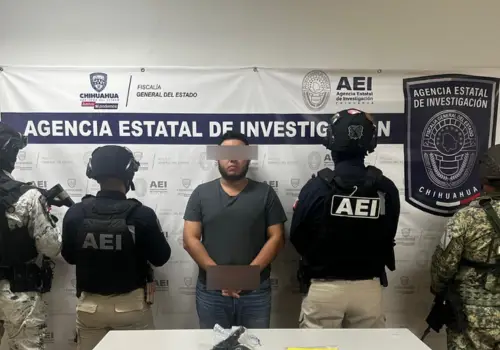 Elementos de la Agencia Estatal de Investigación (AEI), adscritos al Centro de Operaciones Estratégicas (COE), de la Fiscalía de Distrito Zona Norte, detuvieron en los términos de la flagrancia, a quien se identificó como Héctor Adrián M. A., por su presunta responsabilidad en el delito posesión ilegal de arma de fuego, en Ciudad Juárez.