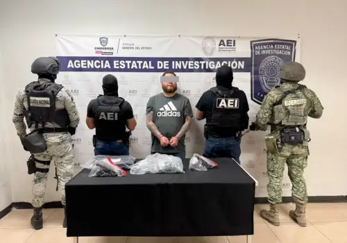 Durante un operativo realizado en la colonia Santa Teresa, con la participación de la Agencia Estatal de Investigación, el Ejército Mexicano y la Guardia Nacional, capturaron a un masculino en posesión de droga y dos pistolas.