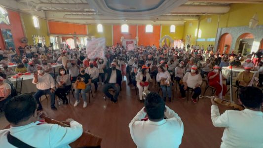 El el salón espectacular de esta ciudad de Chihuahua, cierra campaña la planilla Nueva Era, con el acompañamiento de más de 800 trabajadores de la educación.