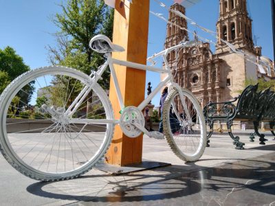 Respecto a los ciclistas que mueren arrollados por la falta de infraestructura urbana, así como señalización y ausencia de una cultura de respeto a los transportes alternos, el diputado colocó una bicicleta blanca frente al congreso del estado como símbolo y homenaje a los ciclistas.