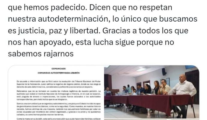 No se nos reconoce como pueblo originario. Estas decisiones no toman en cuenta nuestra identidad, raíces y nuestra forma de vida apegada a nuestra fe. De nuevo, se violentó nuestro derecho. Lo que buscábamos era la capacidad de autodeterminarnos y tener una relación oficial institucional, porque queremos ayudar a que la paz y armonía sea lo que prevalezca en nuestro pueblo.