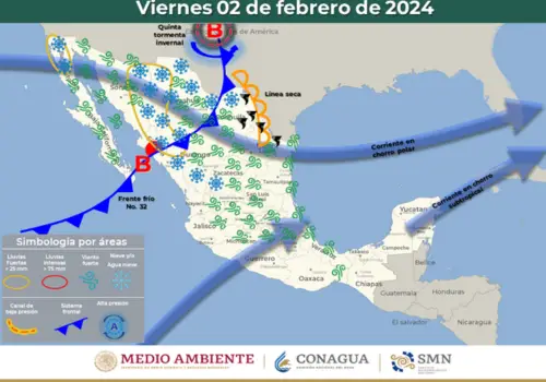 Lo anterior como consecuencia del ingreso del frente frío número 32 y la Quinta Tormenta Invernal, que durante la mañana de este viernes ocasionaron ráfagas en diversas localidades del estado, y caída de nieve sobre el tramo carretero conocido como Puerto Los Lobos, que hasta el momento se encuentra con circulación abierta.