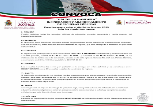El Gobierno Municipal, a través de la Dirección de Educación Municipal invita a las instituciones educativas a participar en la incineración y abanderamiento de escuelas públicas.
