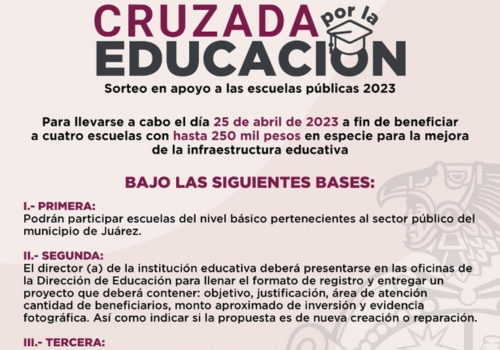 La Dirección de Educación Municipal invita a las instituciones educativas a presentar solicitudes y proyectos para participar en el sorteo “Cruzada por la Educación”, que tiene como objetivo apoyar a las escuelas públicas.