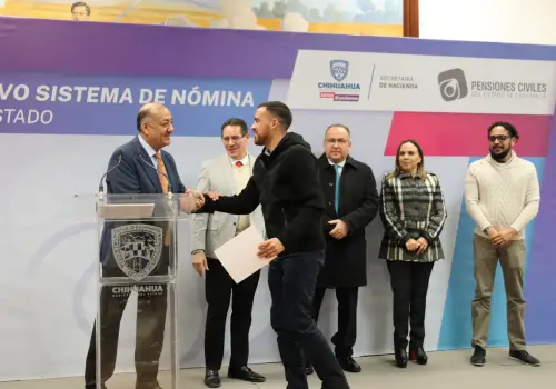 Durante la ceremonia el secretario de Hacienda, José de Jesús Granillo y el director de Pensiones Civiles del Estado, Francisco Hugo Gutiérrez Dávila, acompañados por el rector de la Universidad Autónoma de Chihuahua, Luis Rivera Campos, la secretaria General del Sindicato de Trabajadores al Servicio del Estado, Erika Zermeño y el profesor Jesús David Carlos Barbosa del Sindicato de Trabajadores al Servicio de la Educación (SNTE), hicieron entrega de los reconocimientos al equipo de trabajo involucrado en el desarrollo de este proyecto.