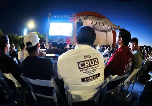 Ciudad Juárez, Chih. – El candidato a la alcaldía de Ciudad Juárez por la coalición “Sigamos Haciendo Historia por Chihuahua”, Cruz Pérez Cuéllar, se unió a cientos de ciudadanos para presenciar el Segundo Debate Presidencial 2024, organizado por el Instituto Nacional Electoral (INE).
