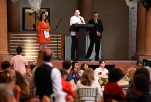 Cd. Juárez.- El Presidente Municipal, Cruz Pérez Cuéllar acompañó hoy a la Gobernadora María Eugenia Campos Galván a la presentación del Nuevo Modelo de Justicia Laboral, el cual tendrá como objetivo eficientar los procesos de conciliación laboral en el Estado.