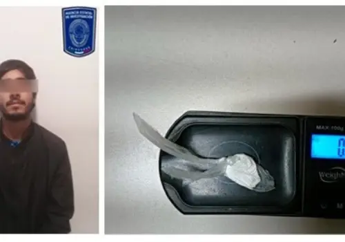 Al darle alcance, le realizaron una revisión corporal y le encontraron entre sus pertenencias un envoltorio de plástico transparente, que contenía 0.33 gramos de cocaína.