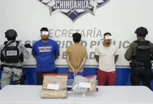 Los agentes lograron la detención de los tres sujetos gracias a un operativo en un domicilio ubicado en las calles Potrancas y Terneras de la colonia Felipe Ángeles.