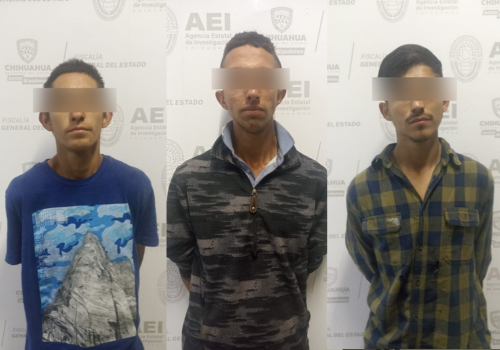 En el sitio ya indicado se detuvo a tres masculinos quienes se identificaron como Sergio Alan M. M., de 24 años de edad; Rosario M. C., de 24 años y Marco Antonio E. L., de 25 años de edad, todos con domicilios en ciudad Cuauhtémoc.
