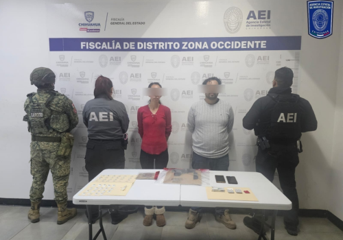 Elementos de la Agencia Estatal de Investigación, con apoyo de personal del Ejército Mexicano, realizaron la noche del miércoles 08 de abril del 2026, un cateo en un domicilio de la zona centro en el que detuvieron a una pareja en posesión de un arma de fuego y drogas.