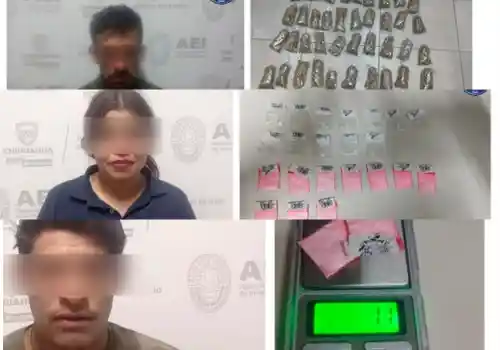 Elementos de la Agencia Estatal de Investigación, adscritos a la Fiscalía de Distrito Zona Occidente, detuvieron en flagrancia en diferentes hechos, a dos hombres y una mujer, en posesión de distintas dosis de mariguana y cocaína.