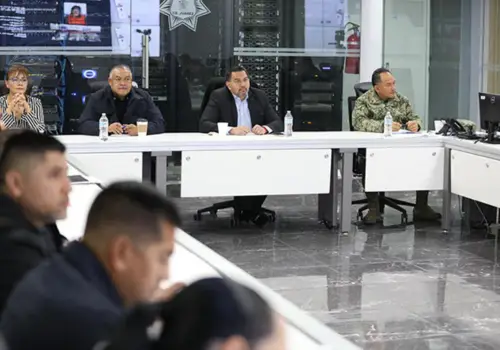 Cd. Juárez.- La mañana de este viernes, el Presidente Municipal, Cruz Pérez Cuéllar, lideró la reunión de la Mesa de Coordinación para la Construcción de la Paz, realizada en el Centro de Emergencia y Respuesta Inmediata de la Secretaría de Seguridad Pública Municipal SSPM), junta que tiene como objetivo evaluar los avances y coordinar esfuerzos entre las corporaciones responsables de velar por la seguridad de la ciudad.