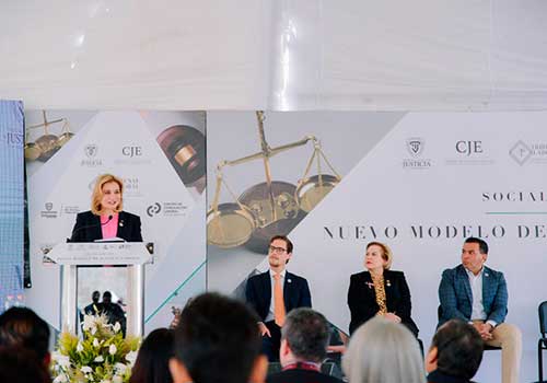 Cd. Juárez.- La gobernadora Maru Campos Galván encabezó el evento de Socialización del Nuevo Modelo de Justicia Laboral, que se desarrolló en las instalaciones de la Fiscalía de Distrito Zona Norte y con el cual la mandataria estatal inició su gira de trabajo por Ciudad Juárez.