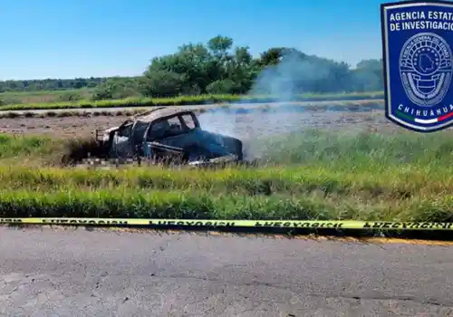Personal de la Unidad de Servicios Periciales se hizo cargo del procesamiento de la escena, en donde se aseguró una pick up marca Ford, de cuatro puertas, totalmente calcinada; diversos cargadores y casquillos de diversos calibres, así como dos armas largas, una de color verde y otra de color negro, con empuñaduras de madera.