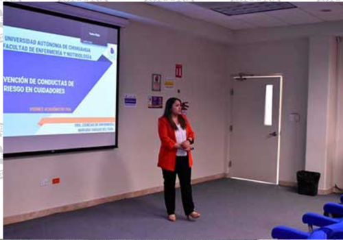 La doctora en Ciencias de Enfermería Mariana Vargas Beltrán, directora de la Facultad de Enfermería y Nutriología, explicó a través de una capacitación que impartió a los estudiantes, que la persona que proporciona asistencia y apoyo diario a quien padece alguna enfermedad (por lo general es un familiar), está propenso a padecer el “síndrome de sobrecarga del cuidador” que puede derivar en problemas económicos, psicológicos, sociales y físicos.