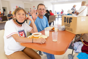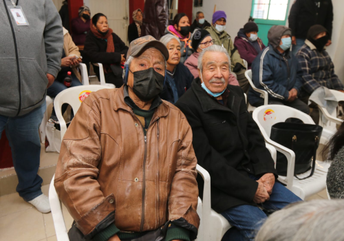 Este día los empleados de ambas dependencias se encargan de entregar 600 cobijas a los adultos mayores que se reúnen cada semana en los poblados de El Valle de Juárez, entre ellos San Isidro, San Agustín, Tres Jacales, Loma Blanca y El Millón.