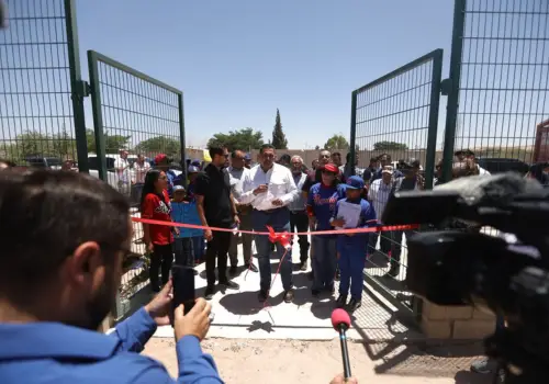 Esta tarde, el Presidente Municipal, Cruz Pérez Cuéllar, entregó la rehabilitación del campo de beisbol infantil en el ejido San Isidro.