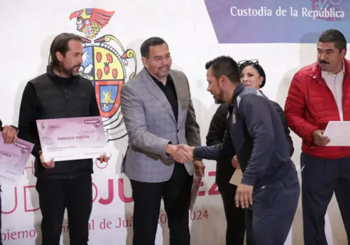 El Presidente Pérez Cuéllar estaba acompañado de Dayira Fernandez, Tesorera del Municipio de Juarez; Daniel Gonzales, director de Obras Públicas; Arturo Rivera, director de Servicios Públicos; Cesar Alberto Tapia, coordinador de Seguridad Vial.