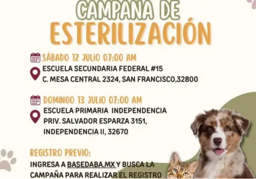 Si tienes una mascota en casa y aún no la has esterilizado, la Dirección de Atención y Bienestar Animal (DABA) invita a la comunidad para que aproveche la campaña de esterilización que tendrá lugar este sábado 12 y domingo 13 de julio, dio a conocer la titular de la dependencia, Alma Arredondo Salinas.