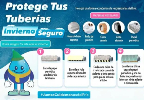 La Junta Central de Agua y Saneamiento (JCAS) dio a conocer las medidas de prevención a fin de reducir el riesgo del congelamiento y rotura de las tuberías ante la temporada invernal.