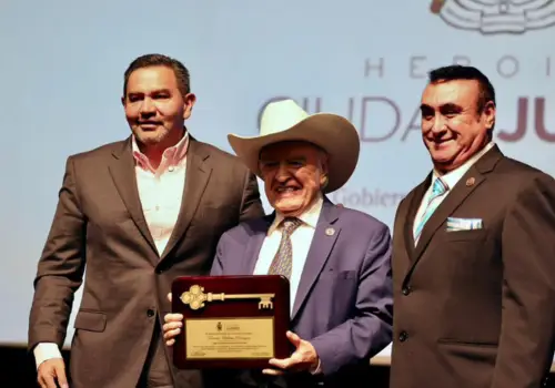 “Que estas llaves no sean solamente un recuerdo, sino el testimonio tangible del afecto y respeto de nuestra comunidad. Don Demetrio, nuestro reconocimiento más sincero y sea siempre bienvenido a Ciudad Juárez”, expresó el alcalde Pérez Cuéllar.