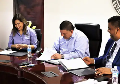 Por la Fiscalía firma el Fiscal, Lic. César Jáuregui Moreno y el Director Jurídico, Mtro. Carlos Mario Jiménez, mientras que, por la Universidad Vizcaya de las Américas Chihuahua, la Lic. Korina Lizett Acevedo Lechuga, Directora General del Centro de Estudios Universitarios y el Mtro. Alberto Isaac Vásquez Adame, Coordinador Académico.
