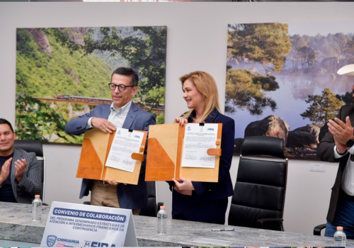 Con el objetivo de detonar el financiamiento al sector rural de Chihuahua, que dejó de atender por la desaparición de la Financiera Nacional de Desarrollo, la Gobernadora Maru Campos firmó el Convenio del Programa “Esquema emergente de financiamiento a intermediarios financieros no bancarios”, en acto efectuado en el Centro de Convenciones y Exposiciones de Chihuahua.