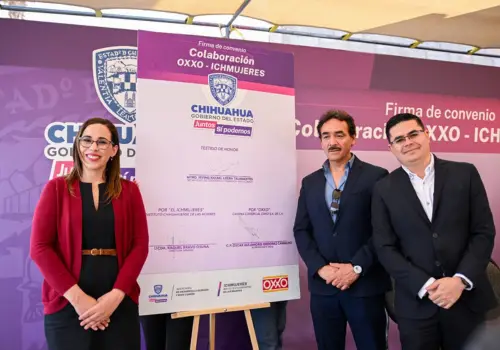 El Instituto Chihuahuense de las Mujeres (ICHMujeres) firmó un convenio-macro de colaboración con la cadena Oxxo para la instalación de un nuevo Punto Naranja en la ciudad de Chihuahua, así como la integración de esta empresa al programa “Juntas Podemos Ahorrar” y “Juntas en tu Empresa” para trabajar en conjunto en la lucha por la erradicación de la violencia de género en la entidad.