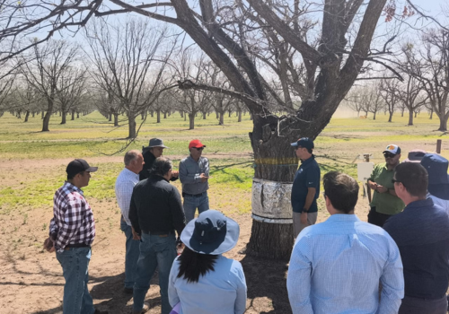 Como parte de la agenda, se realizó una visita al Rancho El Arete, donde se observó la implementación de instrumentación especializada en huertas de nogal pecanero, orientada a evaluar su comportamiento fisiológico frente al estrés climático en condiciones reales, consolidándose como un espacio estratégico para investigación aplicada y transferencia tecnológica.