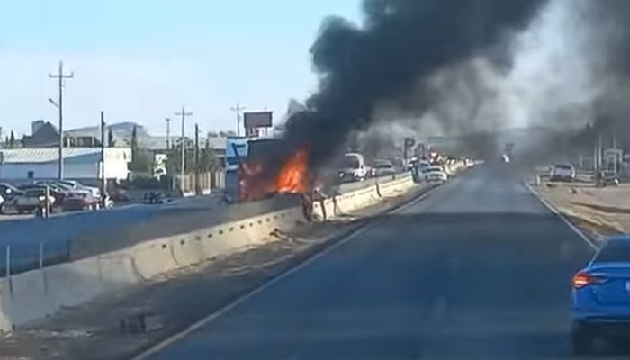 Cuauhtémoc, Chihuahua. — 06 de mayo de 2025. – Durante la mañana de este martes, se registró un voraz incendio en un tráiler a la altura del kilómetro 27 del Corredor Comercial, en el municipio de Cuauhtémoc.