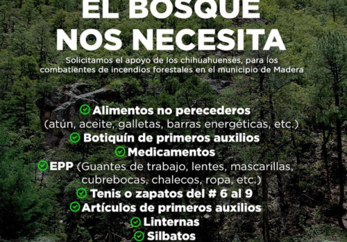 La Secretaría de Turismo de Chihuahua habilitó un Centro de Acopio en sus oficinas para recolectar insumos en apoyo a rescatistas, voluntarios y brigadistas, que trabajan en el combate a los incendios forestales que se encuentran activos en la zona boscosa del municipio de Madera.