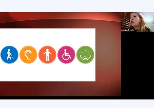Durante su participación platicó que las personas con discapacidad incluyen aquellas que tengan deficiencia físicas, mentales, intelectuales o sensoriales a largo plazo.