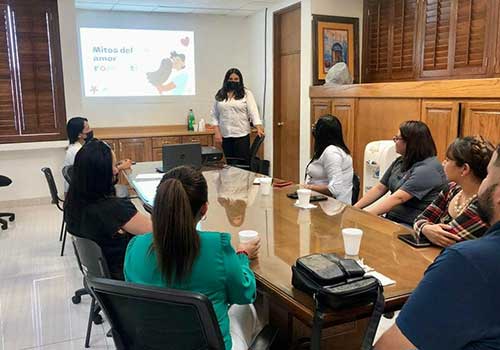 Cd. Juárez.- La Dirección de Derechos Humanos del municipio impartió el curso “Mitos del amor romántico (Un enfoque en la prevención de violencia de género)”, a defensores y defensoras cívicas municipales, donde se abordó el tema de los prejuicios y estereotipos sobre las relaciones de pareja y los diferentes roles, mencionó Santiago González Reyes, titular de la dependencia.