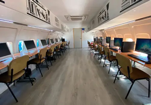 El lugar cuenta con libros digitales y videos de aviación, además los niños pueden ingresar a la cabina y tomarse fotografías, mientras que el capitán del Biblioavión, se encarga de darles una plática y recorrido por el lugar.