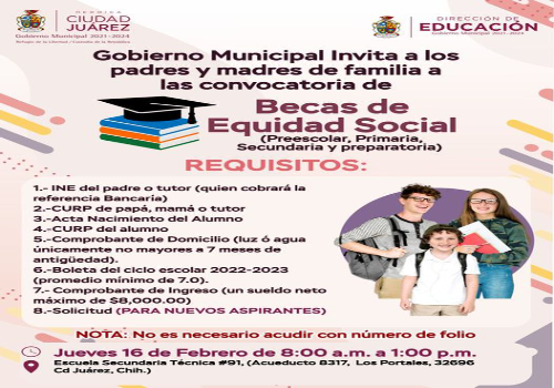La Dirección de Educación Municipal invita a los estudiantes que radican en la zona de la avenida De Las Torres, a tramitar becas escolares mañana jueves.